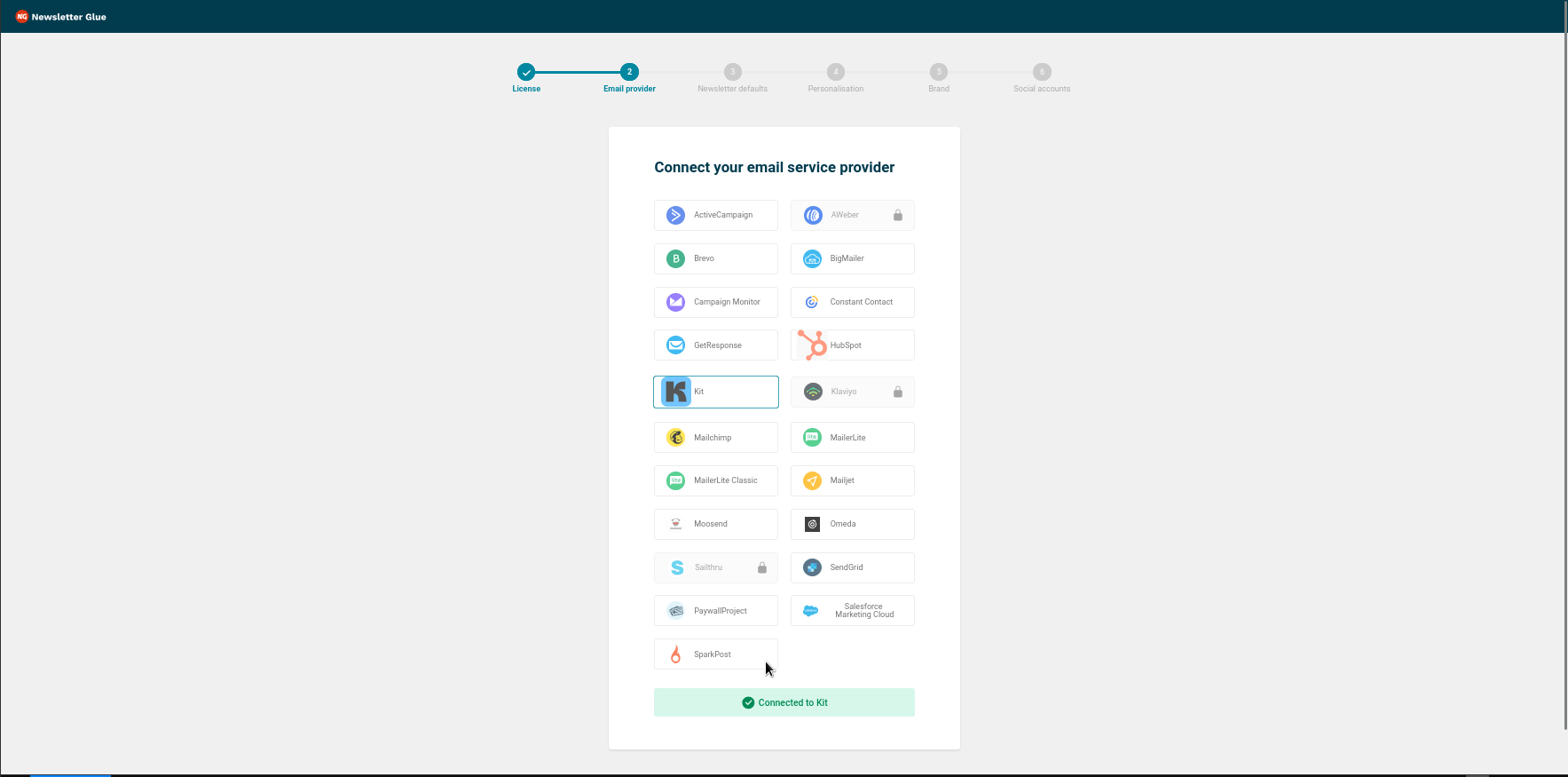 4. You will be automatically redirected back to the Newsletter Glue onboarding wizard.