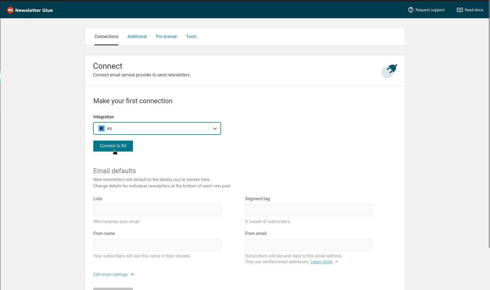2. Click on Connect to Kit and Sign in to your Kit account.