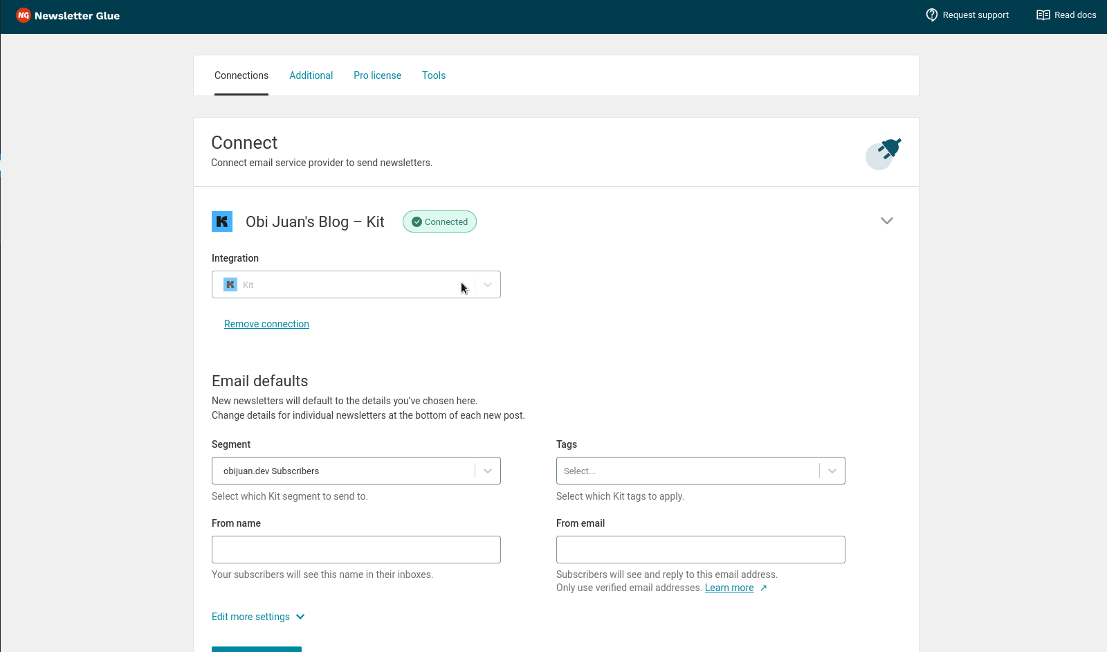 7. You’ll be automatically redirected back to Newsletter Glue.